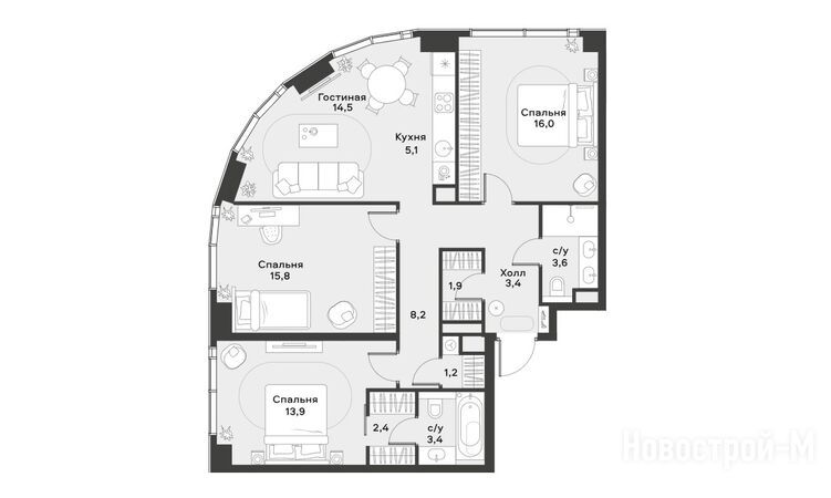 3-комнатные |