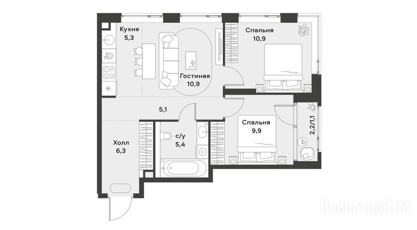 В квартирах предусмотрены просторные кухни-гостиные, гардеробные, гостевые санузлы, просторные прихожие с нишей для встраиваемой системы хранения, мастер-спальни. Есть лоты с лоджиями, балконами, террасами, угловым остеклением, двусторонней и трехсторонней ориентацией окон, с окном в ванной или с окном в гардеробной комнате.