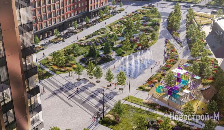 Центральный парк уже открыт для жителей района. На площади 8 тыс. кв. м высажено множество растений, обустроены лаундж-зоны, проложены пешеходные дорожки. Главным объектом центрального парка является сухой фонтан, который зимой превращается в событийную площадь с рождественской елью.
