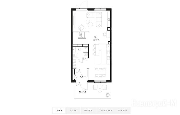 Таунхаусы имеют два жилых этажа, отдельный вход и эксплуатируемую крышу, на которой располагается приватное патио.