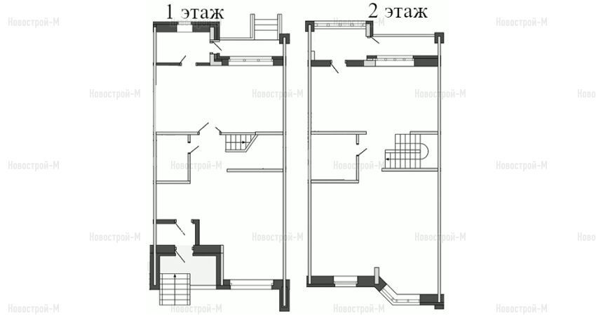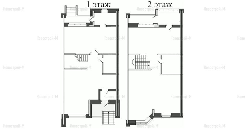 Планировка таунхаусов может трансформироваться под потребности конкретной семьи. Здесь есть возможность сделать две-три полноценных спальни на втором этаже, на первом — спальню и кухню-гостиную с небольшой террасой. На каждом этаже есть санузел. Площадь таунхаусов в продаже — 179,3 кв. м.
