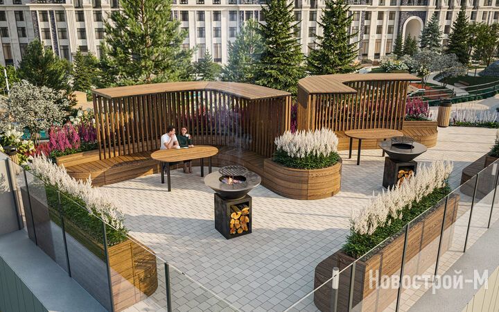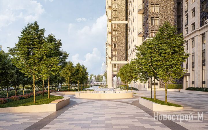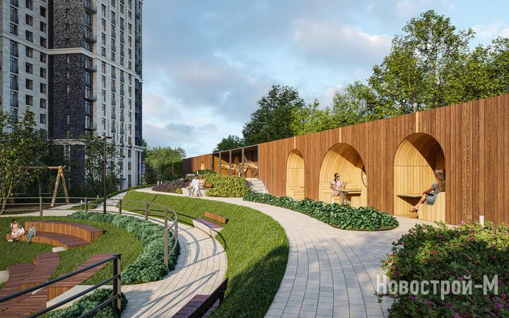 Внутренний двор дома «Достижение» закрыт от машин и посторонних, у каждого подъезда предусмотрены велопарковки, на всей территории будет работать wi-fi.
