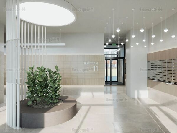 Компания MR-Group уделяет внимание не только внешнему облику своих проектов, но и внутреннему оформлению общих зон. Разработать дизайн лобби для строящихся корпусов «Нестеров» и «Левитан» доверили бюро P+Z interiors. Здесь получила продолжение идея единения с природой, поэтому для отделки были выбраны натуральные материалы спокойных цветов – белого, бежевого, светло-коричневого, серого. Решение получилось лаконичным, но функциональным. В лобби есть всё необходимое: почтовые ящики, колясочные, мойки для лап домашних животных, зона ожидания для гостей и курьеров.