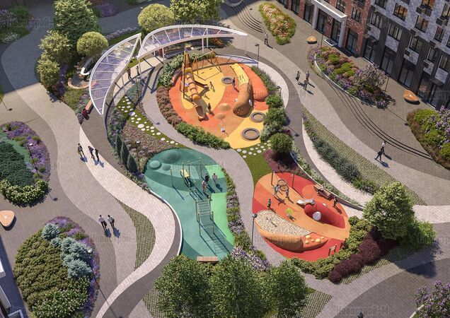 Каждый двор в ЖК «Эко Видное 2.0» – уникальная разработка известных архитектурных бюро. При создании проектов благоустройства дизайнеры придерживались общих тенденций: естественность и гармония с природой, жизнестойкость растений и долговечность оснащения, функциональность и эстетика. И всё же каждый двор получился самобытным, со своей атмосферой.