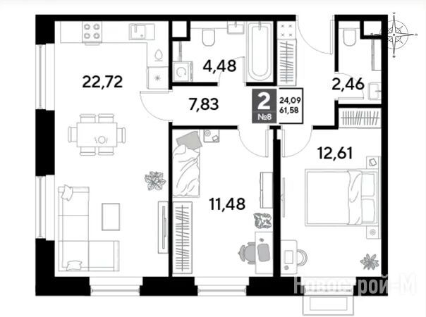 Квартиры продаются с отделкой и без отделки. Есть варианты с балконами, во многих 2- и 3-комнатных лотах предусмотрены второй санузел и кладовка. Террасы будут оборудованы в квартирах на нижнем этаже и будут выходить в закрытый внутренний двор.