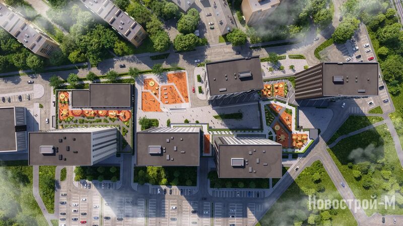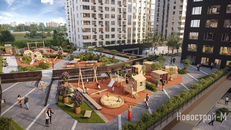 Площадь благоустроенного двора в жилом комплексе составит 6 га. Здесь появятся нейродинамические детские площадки для разных возрастов, места для отдыха, зона workout, столы для пинг-понга, велодорожки, маршруты для скандинавской ходьбы, кленовая аллея для прогулок. Двор будет закрыт от машин.