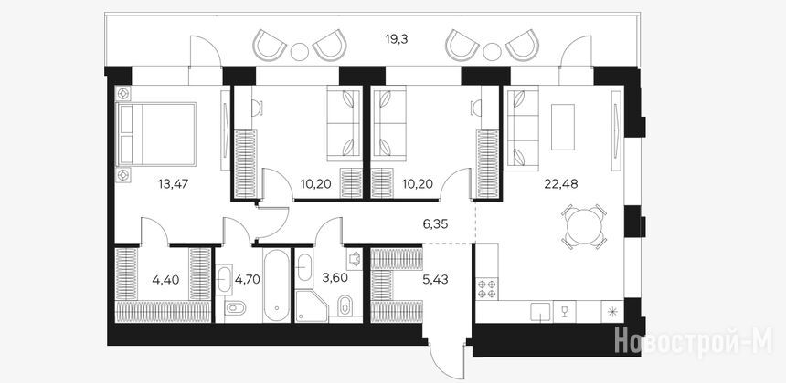 Все квартиры – евроформата с большими кухнями-гостиными. Есть варианты с гардеробными и мастер-спальнями, квартиры с окнами на две или три стороны света.