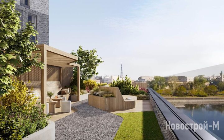 В большинстве квартир, обращенных окнами к реке, предусмотрена лоджия или терраса, а также увеличенная площадь остекления. Ограждения лоджий и террас выполнены из прочного стекла (триплекс) для увеличения радиуса обзора.