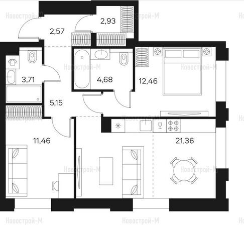 Часть квартир имеют неправильную форму с непрямыми углами — это угловые лоты с увеличенным количеством окон. В ряде планировок предусмотрены помещения для кладовых или гардеробных, два санузла, мастер-спальни. Жилье реализуется с предчистовой отделкой white box max, доступны элементы системы «умный дом». Под white box max подразумевается расширенное количество опций предчистового ремонта: так, помимо разводки электрики, стяжки полов, белых стен, покупатели квартир получат выводы под кондиционеры, установленные датчики протечек, измельчитель пищевых отходов, системы очистки воздуха и др.