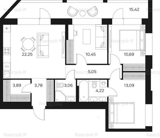 Часть корпусов уже сданы, срок ввода остальных — со II квартала 2022 года по IV квартал 2023 года. На выбор представлены варианты от студий площадью 22,4 кв. м до 5-комнатных лотов площадью 138,6 кв. м, цены — от 10,1 млн рублей.