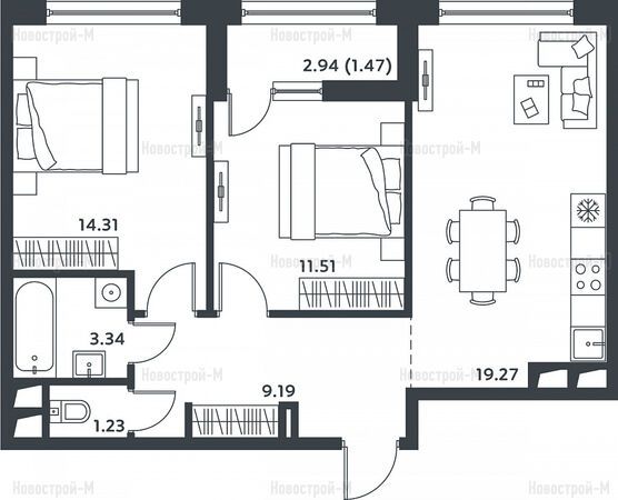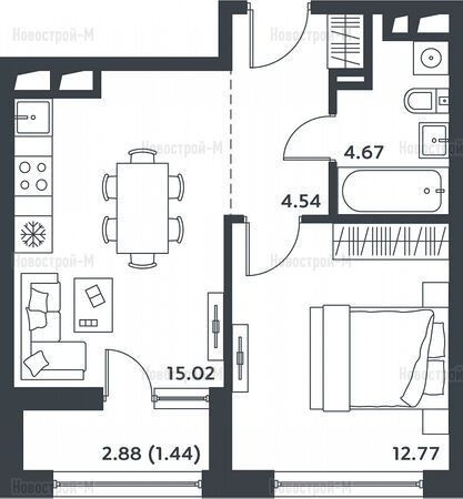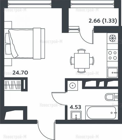 Однокомнатные квартиры также имеют выход на лоджию, совмещенный санузел и просторную прихожую. Площадь «однушек» в продаже варьируется от 31 до 44 м².