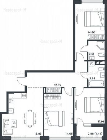 Квартиры с 2-4 спальнями имеют несколько вариантов планировочных решений, как линейных, так и распашного типа с окнами на противоположные стороны света. Среди двухкомнатных есть квартиры с раздельными ванной и туалетом. В 3-4-комнатных квартирах по два совмещенных санузла. В каждой квартире есть небольшая лоджия.
