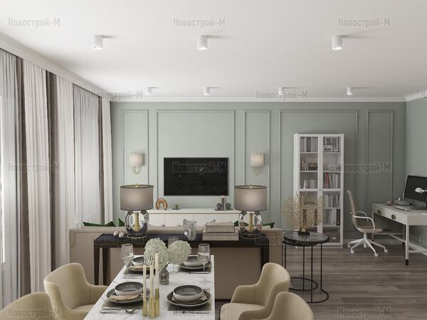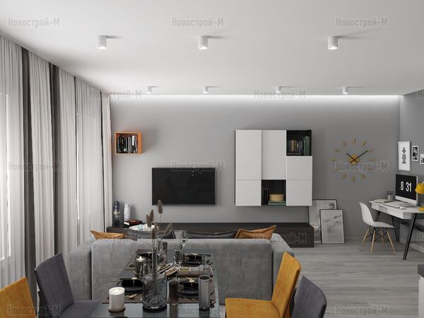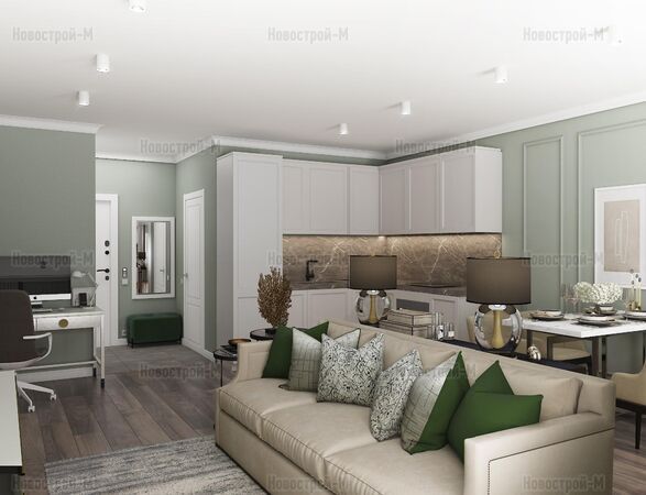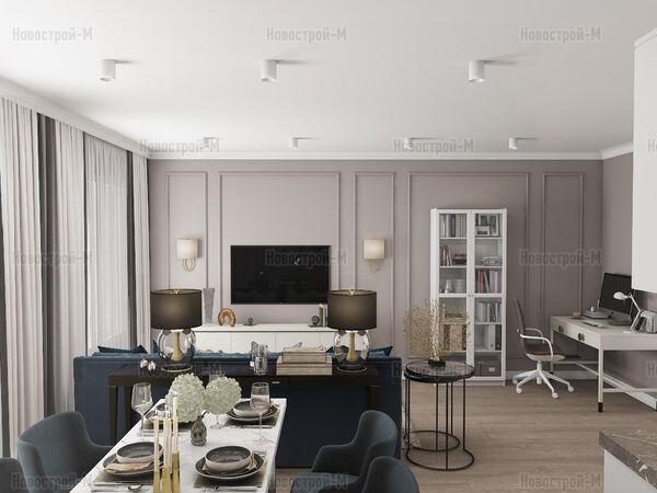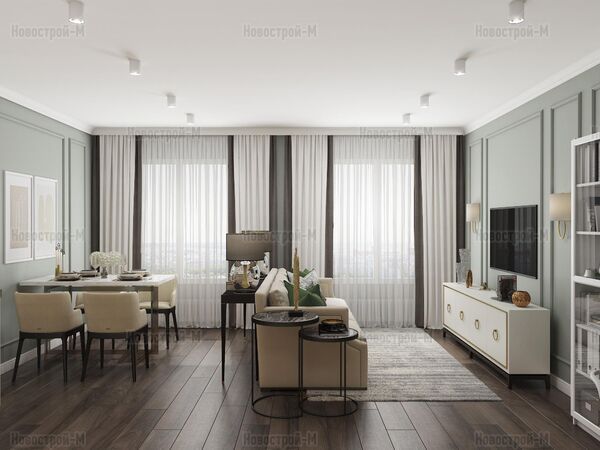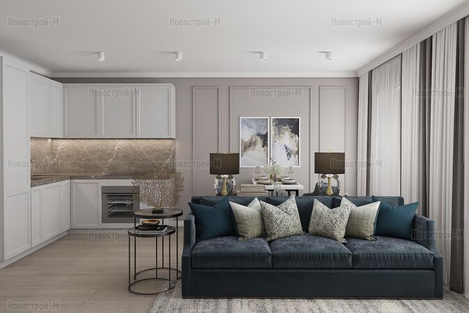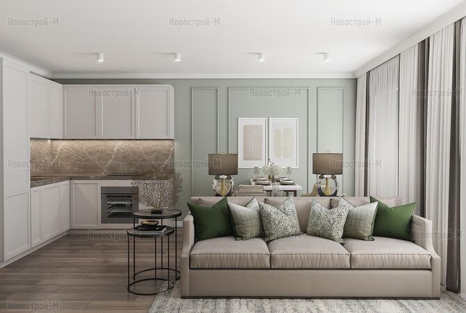 В отдельных секциях предлагаются варианты с готовой отделкой. Покупатель сможет выбрать дизайн в стиле Classic или Modern в теплых или холодных тонах (серый, кремовый, фисташковый). Отделка будет включена в договор долевого участия, а значит, её стоимость можно будет оплатить из ипотечных средств.