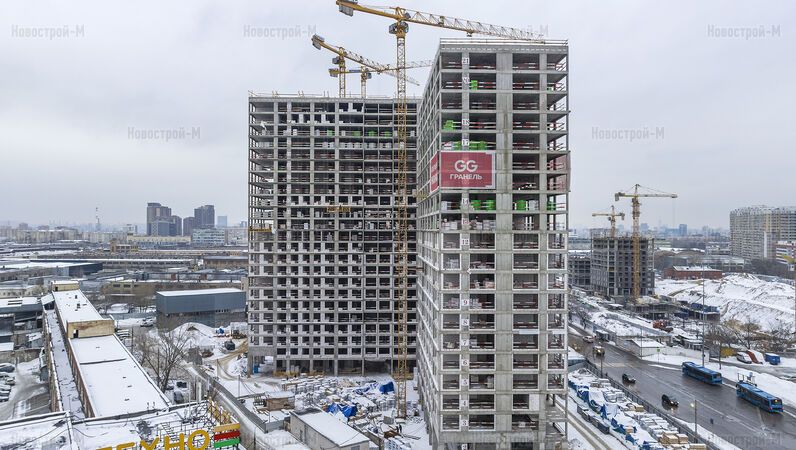 Новостройка находится в высокой степени строительной готовности: плановый срок ввода – II квартал 2024 года. По состоянию на конец апреля все монолитные конструкции уже полностью возведены, завершаются кладочные работы. Новострой-М посещал стройплощадку в январе 2023 года, и вы можете оценить ход строительства.