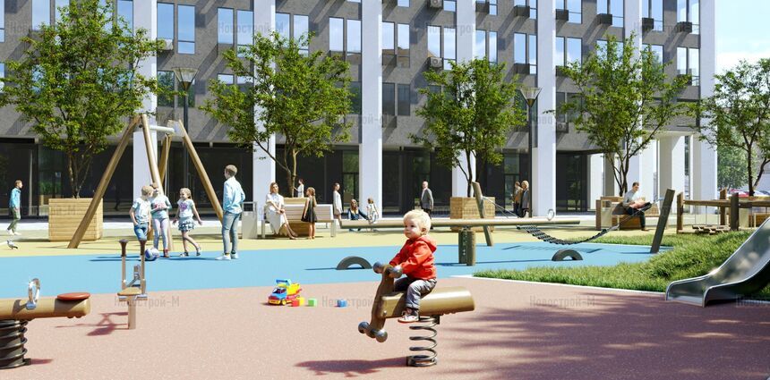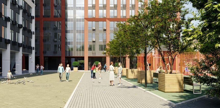Комплекс занимает территорию в 1,28 га, а его секции образуют приватный внутренний двор. Эта закрытая от посторонних территория будет благоустроена: здесь появятся зоны для отдыха и занятий спортом, лужайки, цветники и дорожки. Во дворе, как и на всей территории комплекса, будет возможность подключиться к сети wi-fi.