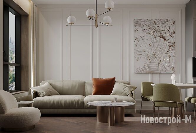 Застройщик предусмотрел разные типы отделки. Есть лоты, которые реализуются без отделки или в состоянии white box. Чистовая отделка предлагается в трех вариантах:
