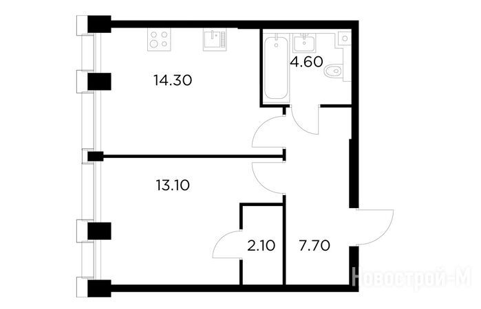 Самые компактные имеют площадь 25 кв. м (студийная планировка с кухней-нишей). Однокомнатные квартиры с обособленной кухней имеют площади от 40 кв. м. Интересно, что их площади достигают 62,5 кв. м: здесь сделан акцент на просторную кухню-гостиную, а метраж спальни уменьшен. «Евродвушки» (от 40,3 до 83,3 км. м) спланированы по похожему принципу.