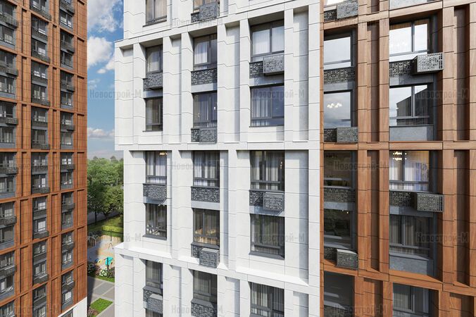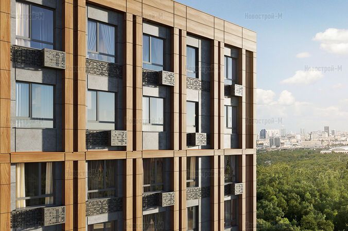 Новостройка гармонично впишется в облик «старой» Москвы. Фасады корпусов будут облицованы отделочными материалами натуральных оттенков: крупноформатным керамогранитом коричневого цвета и натуральным светло-серым камнем. Предусмотрены декоративные короба для внешних блоков кондиционеров в индивидуальном дизайнерском исполнении. Также застройщик обещает эксплуатируемую кровлю.