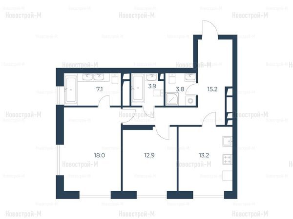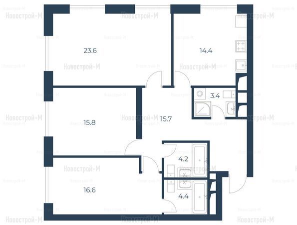 Предложение квартир с тремя спальнями включает варианты с двумя или даже тремя окнами в угловых помещениях, лоты с мастер-спальнями. Квартиры предлагаются без отделки, однако можно ознакомиться с визуализацей различных вариантов дизайна, чтобы понять, как жилье может выглядеть после ремонта.