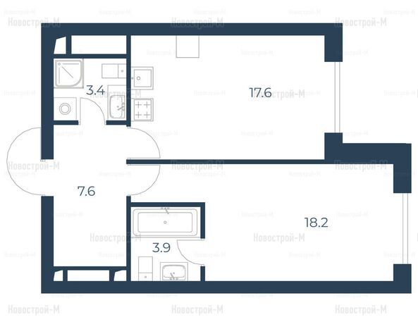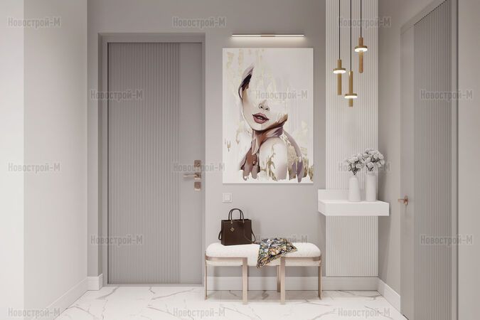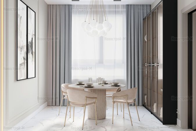 1-комнатные квартиры отличаются наличием двух санузлов, один из которых расположен в мастер-спальне, и просторной кухней-гостиной, то есть фактически это «евродвушки». Планировки прихожих позволяют выделить отдельную гардеробную. Причем в некоторых «однушках» окна выходят на две стороны.