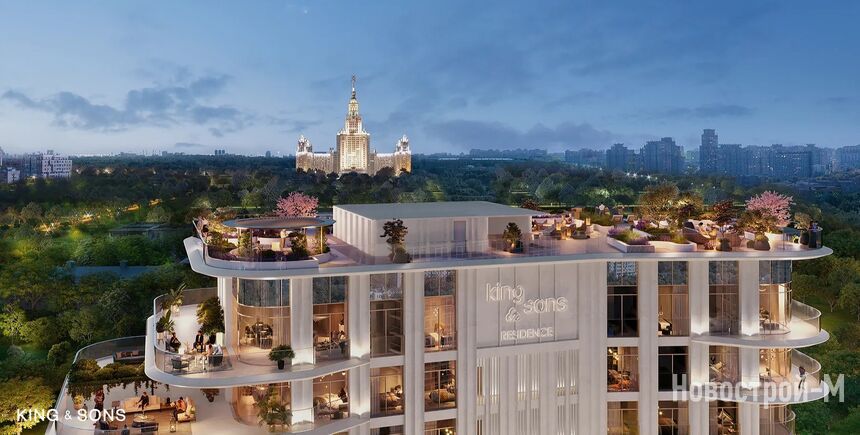 Клубный дом King & Sons позиционируется как фамильная ценность, квартиры в котором передаются по наследству — как бриллианты или произведения искусства. Большинство квартир в 15-этажном здании имеют панорамные окна, что обеспечит отличные виды на высотку МГУ и Ботанический сад, посольский квартал и парки, небоскребы «Москва-Сити». Для автомобилей есть одноуровневый подземный паркинг (соотношение числа мест к количеству квартир — почти 1:1), коммерческих помещений под ретейл не предусмотрено.