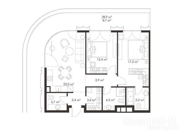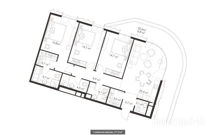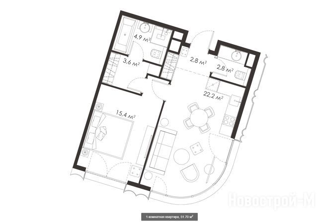 Квартиры в основном правильной формы, но есть и варианты с непрямыми углами.