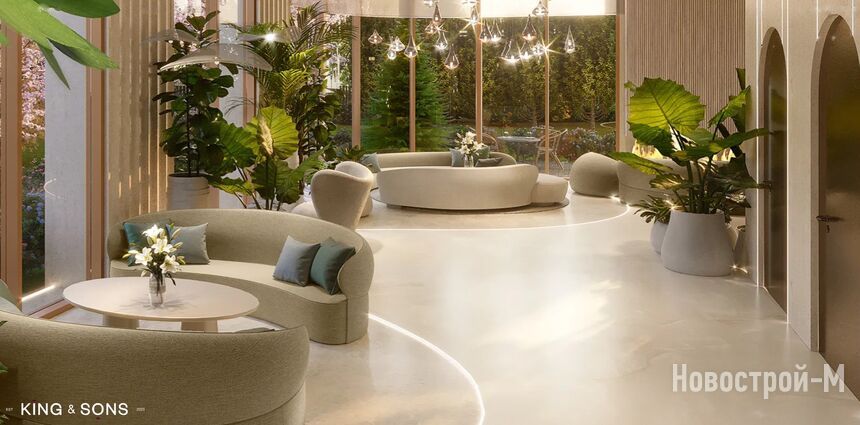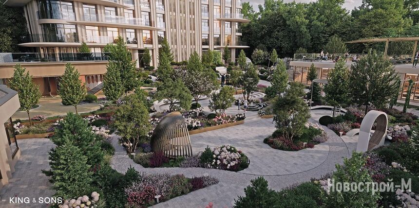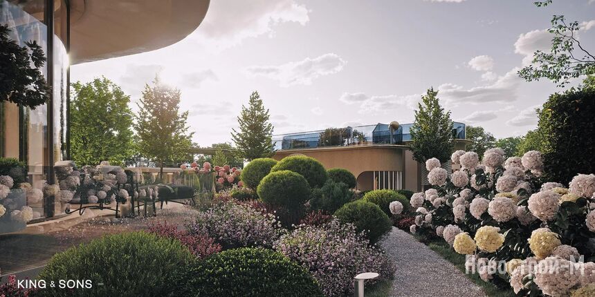 Собственная инфраструктура King & Sons включает спортзал, сад на первом этаже и кинотеатр на крыше. Проект расположен в развитой обжитой локации, в окружении есть всё необходимое.
