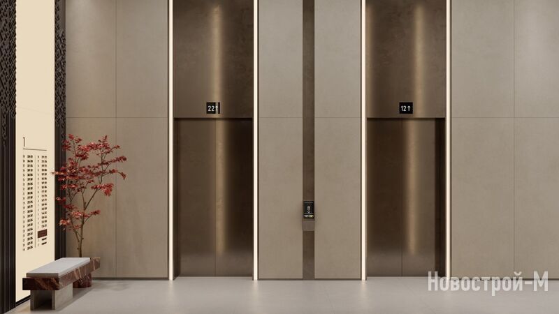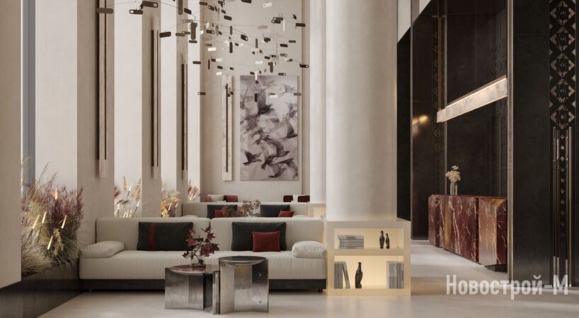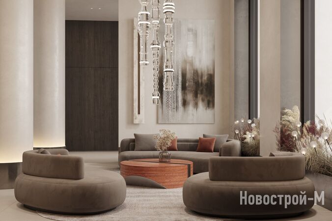 Входные пространства благодаря высоким пролетам и окнам от пола до потолка призваны создавать ощущение роскошного отеля. Лобби планируется обставить авторской мебелью, которая должна придать пространству элегантности и завершенности.