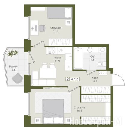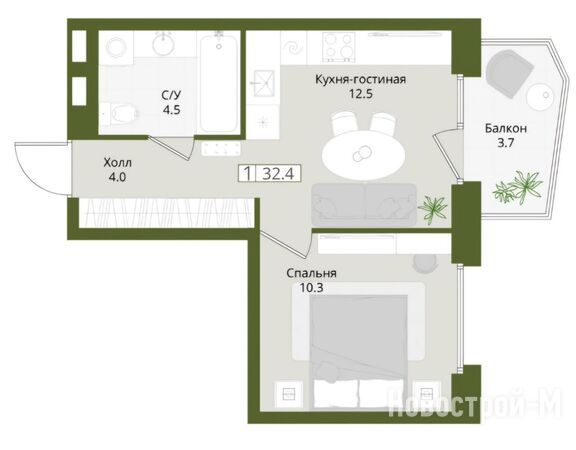 Собственная инфраструктура включает школу и два детских сада (муниципальный и частный). Цены на квартиры — от 4,7 млн рублей за студию без отделки площадью 20,9 кв. м.