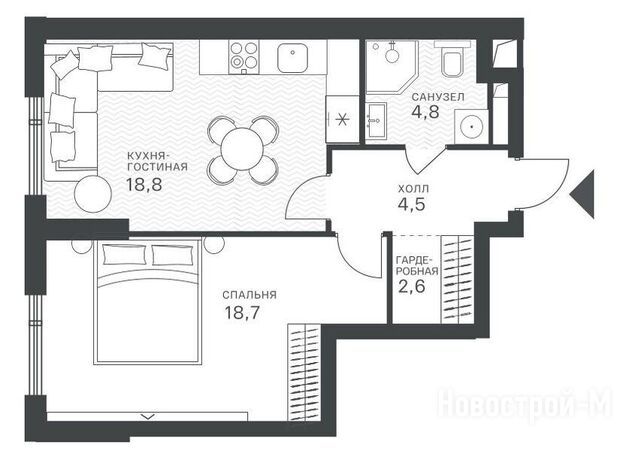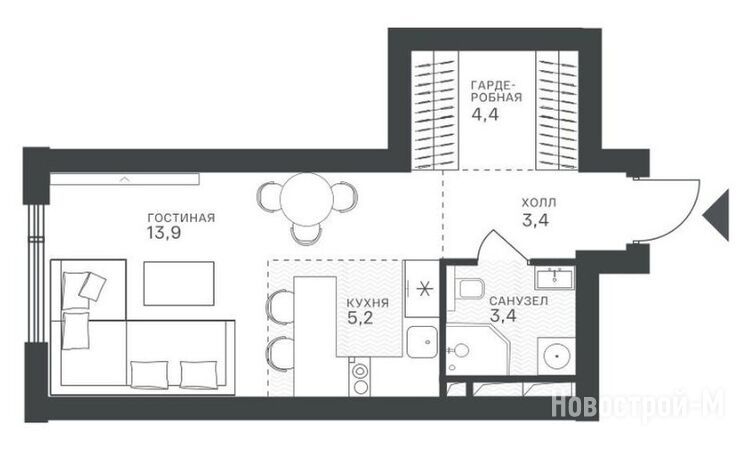 Планировки студий достаточно типовые, однако в некоторых таких квартирах есть гардеробные. В большинстве 1-комнатных тоже есть гардеробные и уже встречаются мастер-спальни, а также варианты с двумя санузлами. Планировки студий — линейные, однушек — линейные и угловые.