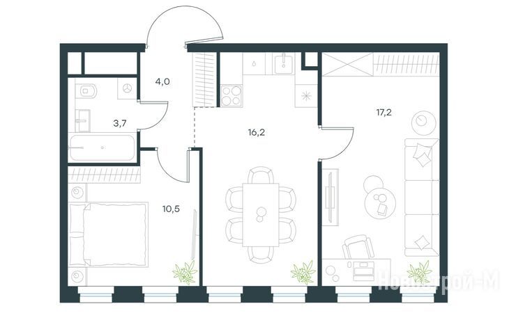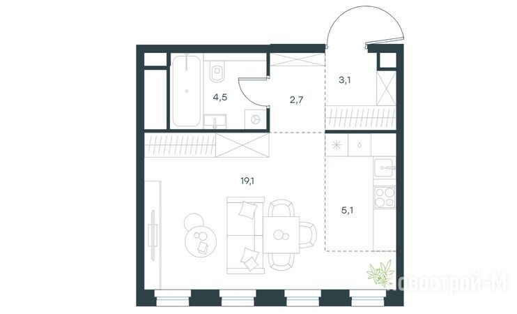 В проекте предусмотрено более трех десятков планировочных решений: от студий до просторных семейных квартир. Европланировка позволяет легко адаптировать помещения под потребности современного городского жителя, который много времени проводит в просторной кухне-гостиной, где можно есть, общаться, работать и принимать гостей. Есть выбор планировок с двумя санузлами.