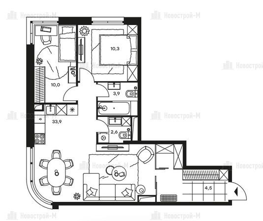 Изучая планировки апартаментов, можно обратить внимание на то, что балконы предусмотрены только для избранных – владельцев некоторых трёхкомнатных апартаментов. А ведь опыт самоизоляции показал потребность горожан в своём каком-никаком уличном пространстве. В этом плане повезёт тем, кто покупает апартаменты на первом этаже – в их состав входит собственное патио. И тем, кто покупает пентхаус – у них будет собственная терраса. Что касается остальных апартаментов, то в них тоже могут применяться нестандартные решения, например, в некоторых апартаментах - проходные гостиные (на любителя), в некоторых – неоднозначное зонирование (ближе к входу располагается спальная зона, а кухня-гостиная – дальше всех).