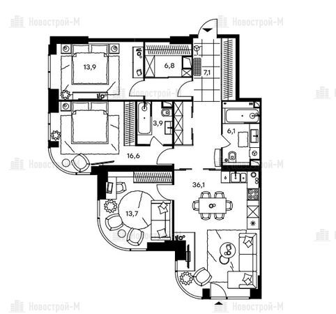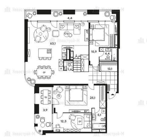Три башни, входящие в состав комплекса, рассчитаны на 745 апартаментов площадью от 23,3 кв. м до 208,7 кв. м. Еще одна особенность проекта – оригинальные форматы номеров. Среди них – пентхаусы с террасой (панорамный вид, терраса площадью до 14,6 кв. м, второй свет, 6-метровые потолки). Апартаменты с патио, в которых есть отдельный вход и тоже высокие потолки.