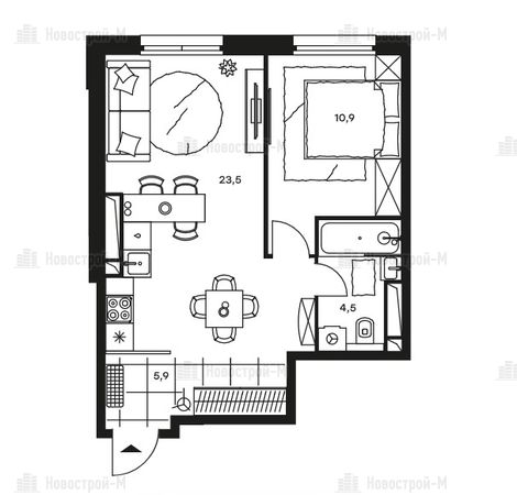 Плюсом является наличие европланировок (объединённые кухни-гостиные – это удобно), и наличие отделки – от white box до чистовой, причём стоимость включается в стоимость договора, а значит на отделку распространяется и ипотека.