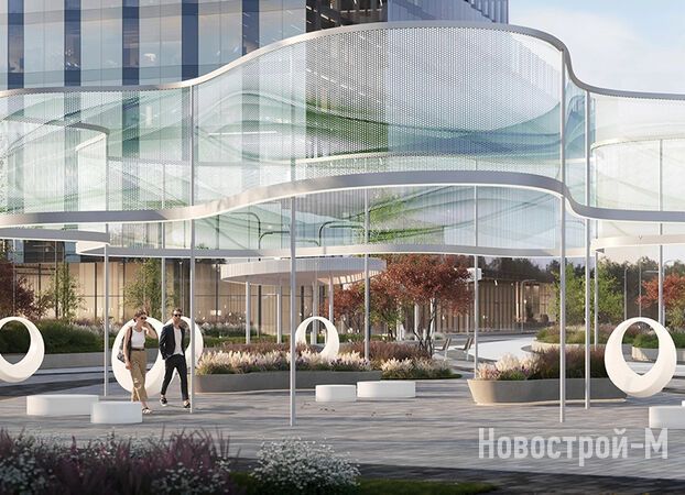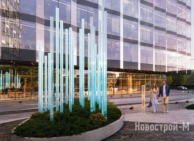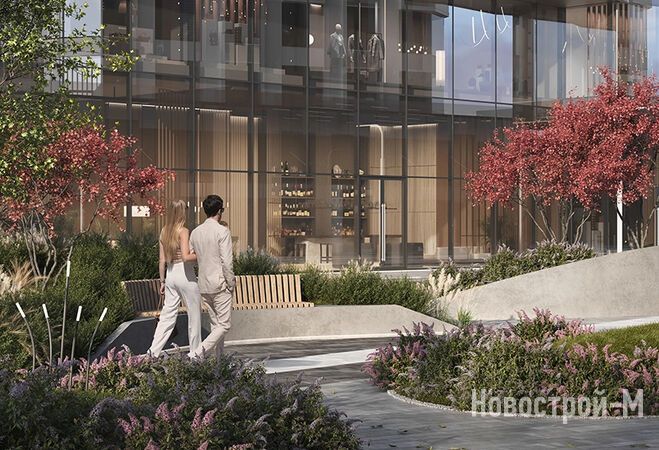 Двор будет закрыт от посторонних, на его территории разместятся детские и спортивные площадки, места для отдыха с качелями, коворкинг, прогулочный арт-променад в виде цифровой реки. Особое внимание уделено ландшафту: территорию украсят камни-валуны, будут высажены пихты, карликовые ели и сибирский кустарник дерен. Жилую и деловую часть комплекса соединит пешеходный бульвар.