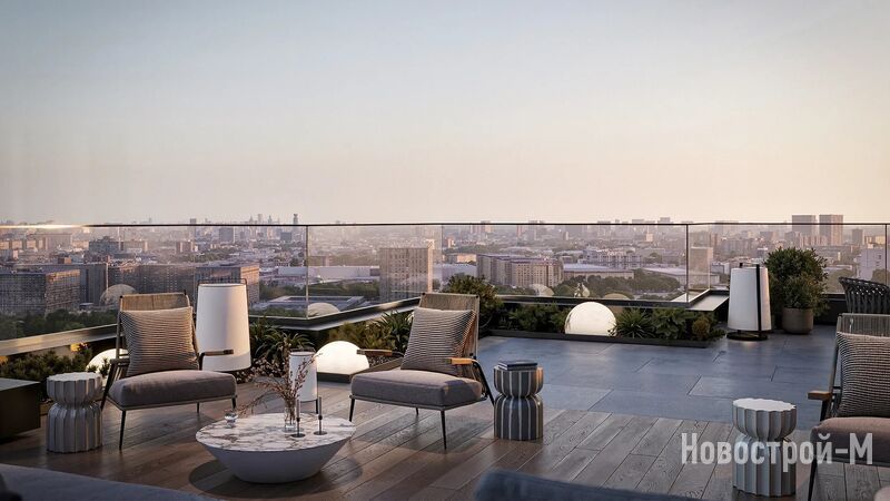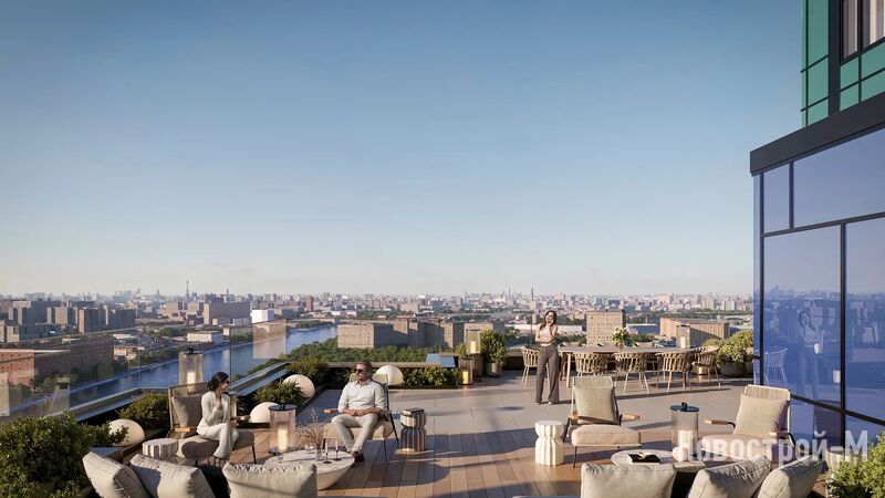 На 35 этаже разместится Sky Lounge — общественная терраса с захватывающими видами на город и Москву-реку. Перед выходом на террасу расположится мультифункциональное лаунж-пространство с кофе-поинтом и детской игровой комнатой.