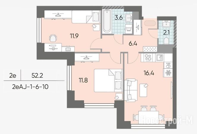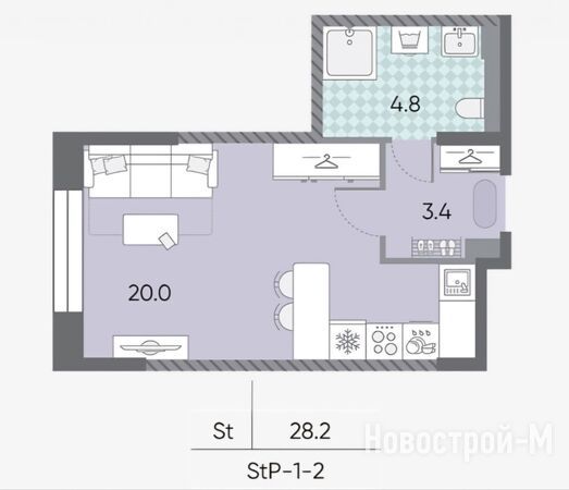 Квартирография проекта представлена лотами различной площади — от 28,1 до 80,5 кв. м. Более 70% жилого фонда приходится на студии и однокомнатные квартиры. Среди доступных предложений также есть двухкомнатные и трехкомнатные квартиры с мастер-спальнями, кухнями-гостиными и несколькими санузлами. Расположение комнат — угловое или линейное.