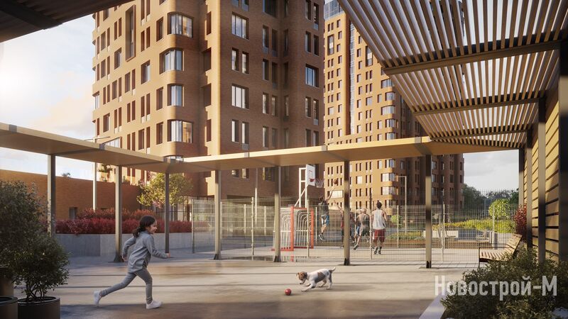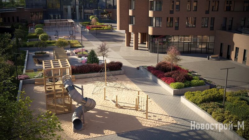 Площадь двора в ЖК «Марк» составит 0,6 га. Эта территория будет закрыта для посторонних и благоустроена в соответствии с современными тенденциями. Кроме зелёных насаждений во дворе появятся спортивные площадки с травмобезопасным покрытием из резины, развивающие площадки с игровым оборудованием для детей разных возрастов.