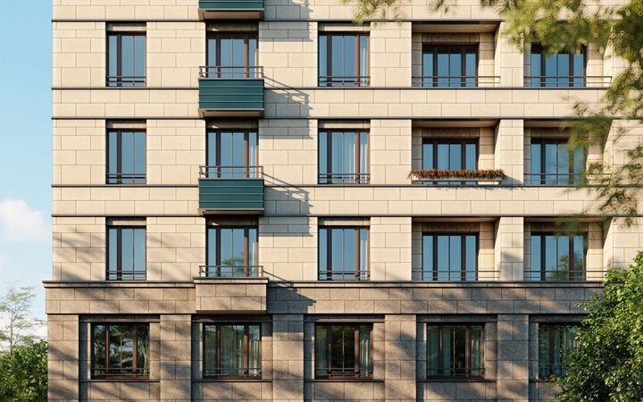 Элегантный и сдержанный архитектурный облик находит продолжение и во внутреннем оформлении. В каждом подъезде установлены высокие прозрачные входные группы, домофон в тёплом тамбуре, предусмотрена понятная навигация в холле и на этажах. Интерьер подъездов и мест общего пользования вдохновлен идеями немецкого модного дома Hugo Boss. Светлый пол, темные элементы отделки, лаконичная дизайнерская мебель, растения, обилие зеркал и мягкое освещение — все это делает интерьер стильным, современным и по-домашнему уютным.