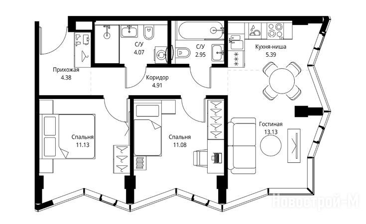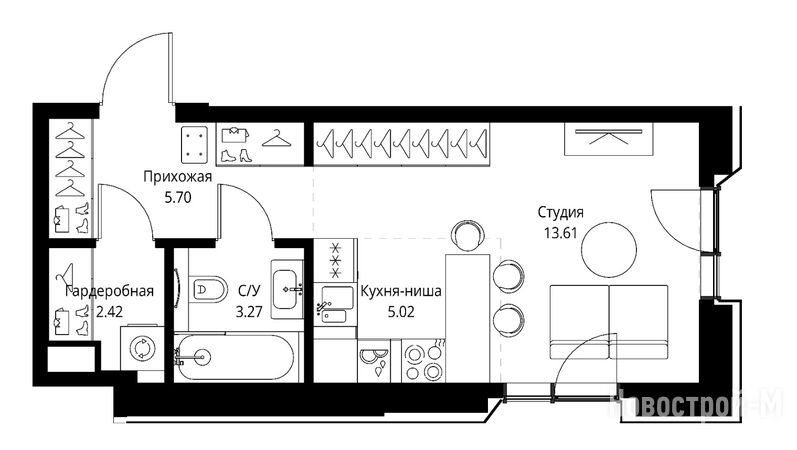 Комплекс подойдет и тем, кто ищет квартиру для себя или своей семьи: застройщик предлагает различные планировки – от довольно просторных студий до четырехкомнатных квартир.