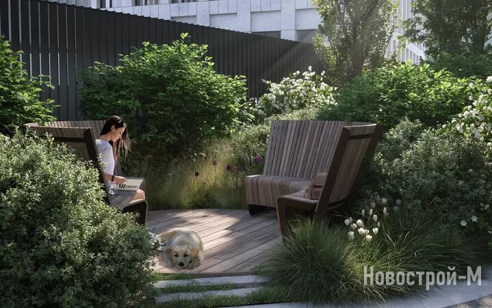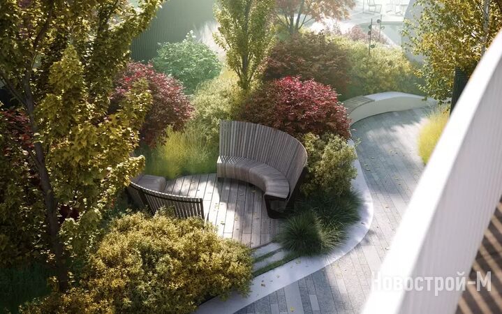 Местом притяжения станет центральная площадь с сухим фонтаном, напольными шахматами и местами для отдыха. Ландшафтное озеленение территории предусматривает высадку различных цветов, вечнозеленых деревьев и кустарников.