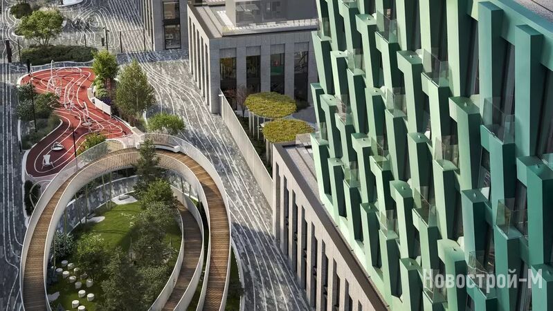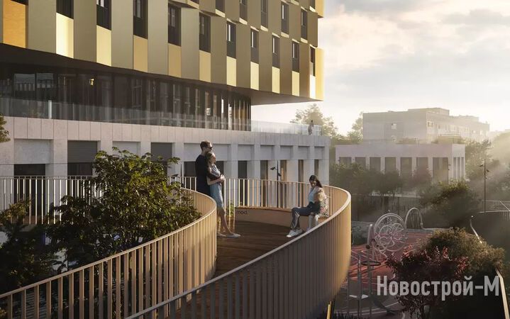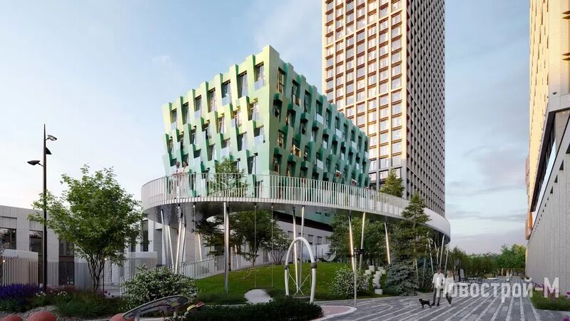 В ЖК MOD предусмотрено уникальное двухуровневое благоустройство, вторым уровнем которого является стилобат. Оно включает детские и спортивные площадки, парящий мост со смотровой площадкой, зоны для отдыха, работы и общения, искусственные водоемы, на которых зимой можно устанавливать елки.
