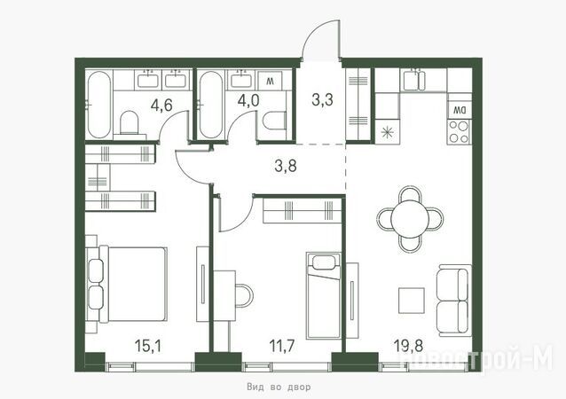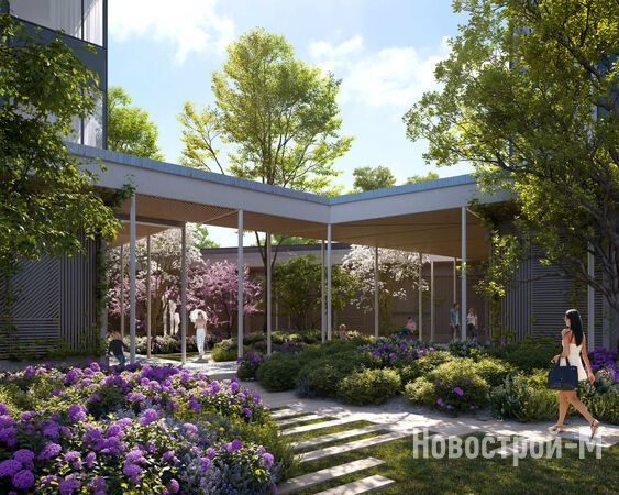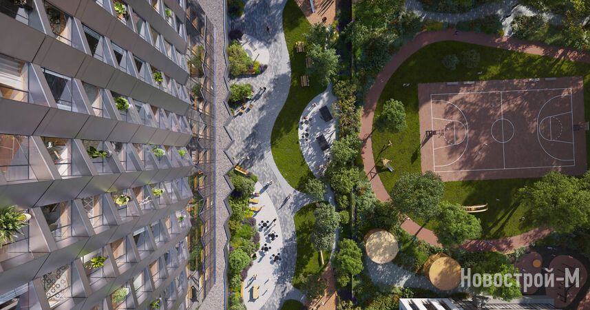 Приватные внутренние дворы отличаются тематикой и колоритом. Доминантой одного двора станет сад, второго — импровизированный лес. Центром притяжения всего ЖК станет сухой фонтан.