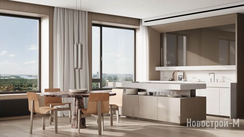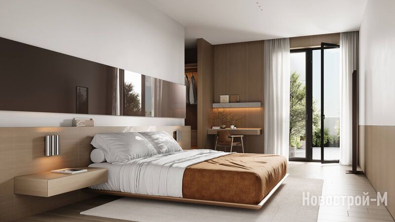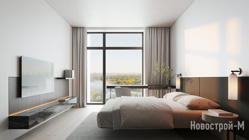 Покупателям предложены варианты от студий площадью от 24,8 кв. м до лотов евроформата с четырьмя спальнями площадью до 128,8 кв. м. В части квартир есть мастер-спальни, французские балконы, гардеробные, есть варианты с угловым панорамным остеклением.