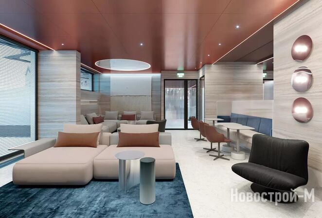 Первые этажи ЖК «Монблан» займут коммерческие помещения, где откроются, в частности, кафе, продуктовые магазины и другие объекты. В лобби предусмотрен клабхаус — пространство для рабочих и дружеских встреч, с библиотекой и кофе-поинтом. Для юных резидентов будет работать детский клуб.