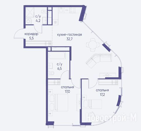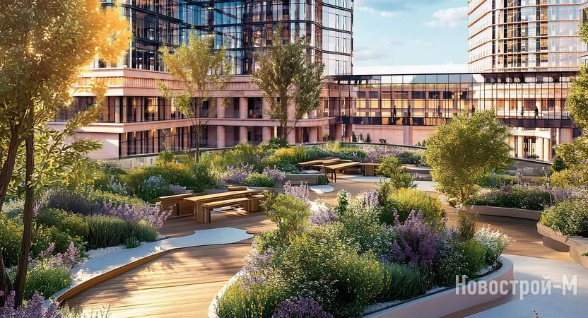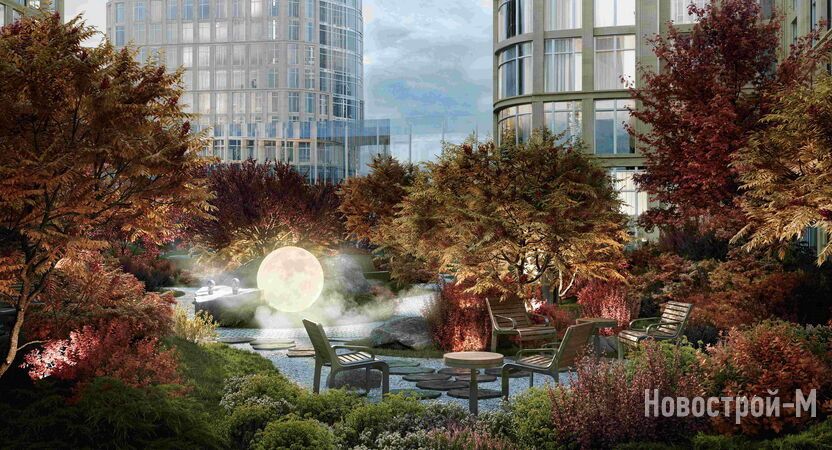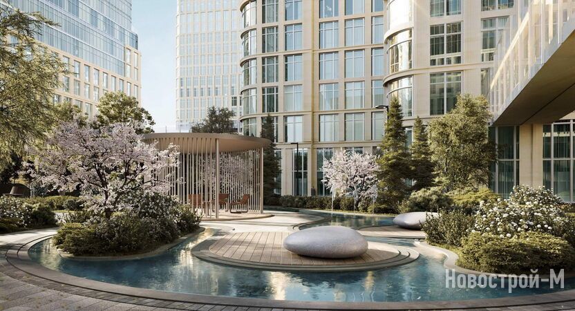Собственная инфраструктура ЖК включает детский сад, школу, фитнес-зал с бассейном. Цены на квартиры — от 72,32 млн рублей за евродвушку площадью 55,10 кв. м.