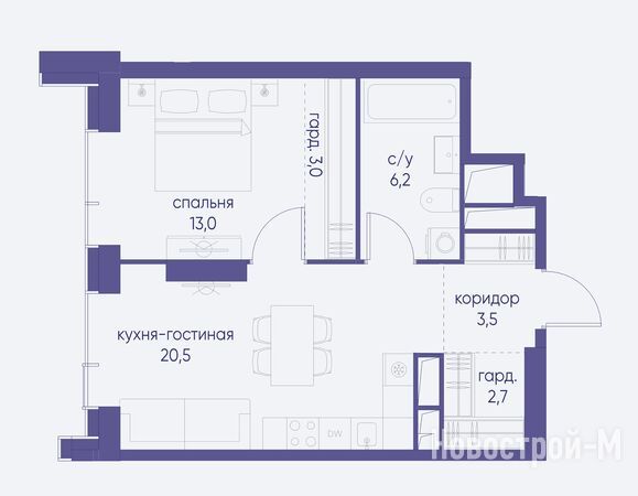 Квартирография включает различные планировки евроформата площадью от 34 до 264 кв. м, уникальные форматы представлены лотами с лоджиями, террасами, панорамными видами. Высота потолков — от 3,3 до 4 м. Отделка не предусмотрена.