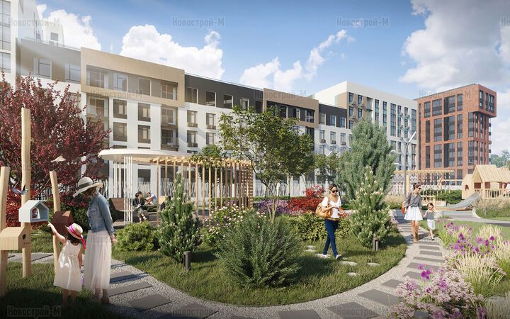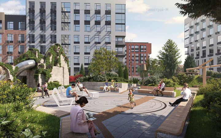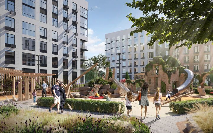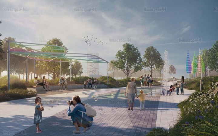 Дворы, набережные и городские пространства соединены бульварами, которые также являются точками притяжения для местных жителей. Еще одна территория для прогулок и отдыха — центральный парк площадью 2,5 га.