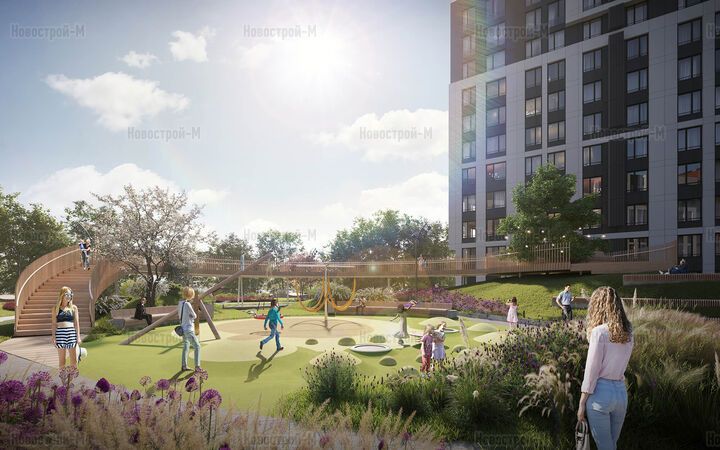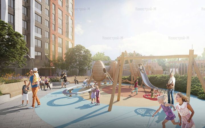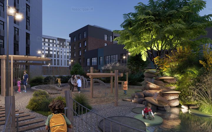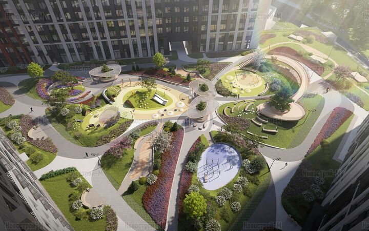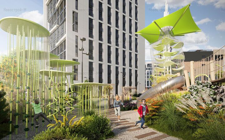 Для каждого двора разработана собственная концепция благоустройства со стилизованными локациями: «Холмы», «Затерянный город», «Джунгли», «Мир птиц».