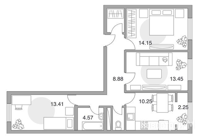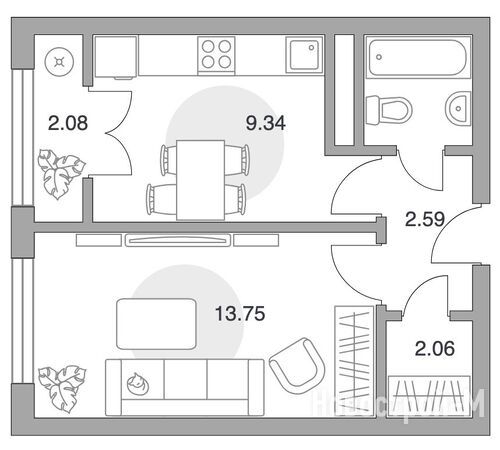 Квартирография проекта включает более 40 разнообразных планировок — от студий до 3-комнатных. В июле 2025 года в продаже есть 19 квартир площадью от 23,49 кв. м до 69,26 кв. м. Жилье продается без отделки, в некоторых квартирах есть лоджии и гардеробные.